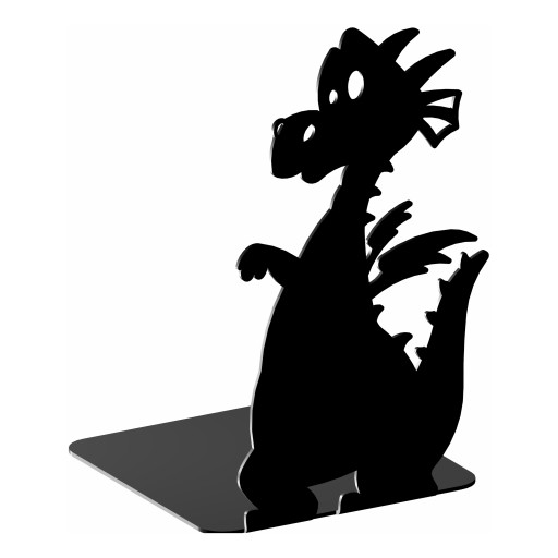 Podpórka do książek w kształcie smoka wycinana laserowo. Podpórka nie tylko będzie spełniała funkcje praktyczne, ale również będzie stanowiła ozdobę Twojego wnętrza. Utrzyma Twoje książki w pionowej pozycji oraz zapobiegnie przed zsuwaniem się z półki. Produkt wykonany z wysokiej jakości stali. Sprawdzi się w pokoju młodzieżowym, biurze, czy salonie.