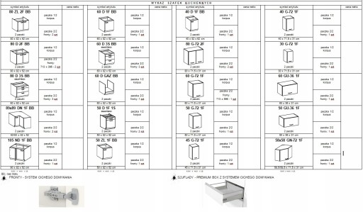 Zestaw jest modułowy, co pozwala na skomponowanie własnego, wymarzonego zestawu mebli do kuchni.