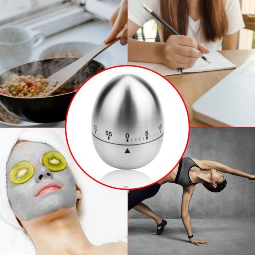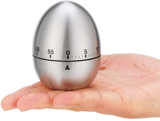 - Minutnik mechaniczny, w kształcie jajka wykonany został ze stali nierdzewnej