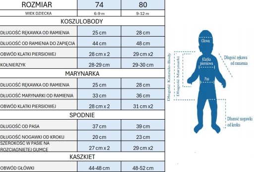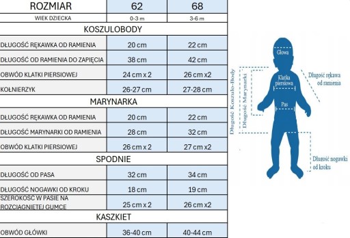 ROZMIAR UBRANEK Z TABELI PROPONUJEMY PORÓWNAĆ Z AKTUALNIE PASUJĄCYMI UBRANKAMI