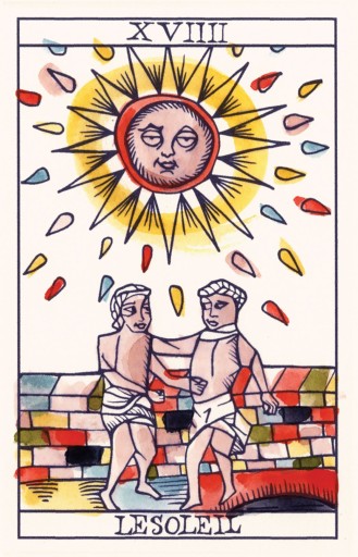 Ta wyjątkowa talia Tarota przedstawia dziedzictwo kartomancji Starego Świata, łącząc skromną talię francuskich kart do gry z klasycznym Tarotem Marsylskim. Odzwierciedlając korzenie Tarota jako grę karcianą, Playing Marseille to zabawne podejście do czytania, które podkreśla proste, przystępne metody ludowe i wnikliwą obserwację zamiast ezoterycznej symboliki. Praktyczny system wróżenia Ryana Edwarda jest łatwy do nauczenia i można się nim cieszyć z każdą marsylską talią Tarota. Zawiera 78 kart i 56-stronicowy ilustrowany przewodnik (po angielsku) ze znaczeniami kart, słowami kluczowymi, instrukcjami i przykładowymi odczytami. Poradnik wyjaśnia, jak czytać Tarota przez pryzmat klasycznej kartomancji kart do gry.