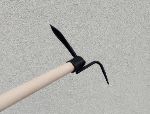 Pierwszy z nich (hak) wykonany jest z twardego pręta fi 8 mm sklepanego na szpic kwadratowy i zakrzywionego w ten sposób, aby zapewnić optymalne nachylenie styla w stosunku do podłoża.