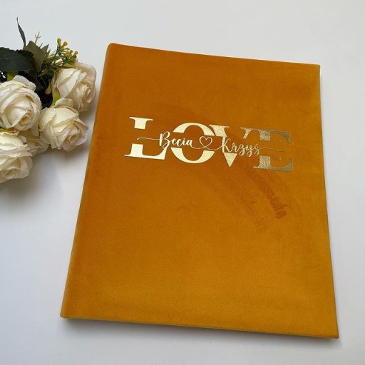 Welurową oprawę zdobi złoty lub srebrny napis.