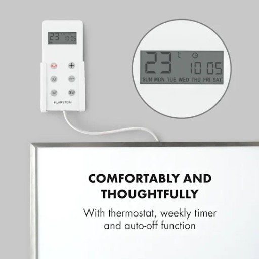 - Komfortowy i przemyślany: Z termostatem, timerem tygodniowym i automatyczną funkcją wyłączania