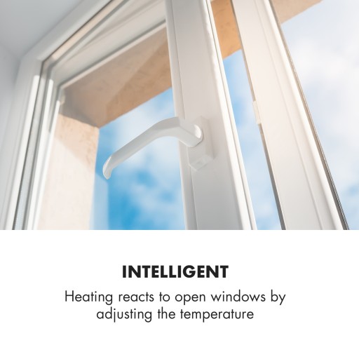 - Inteligentny: Dzięki wbudowanemu systemowi wykrywania otwartych okien promiennik reaguje w przypadku otwartego okna odpowiednim dostosowaniem temperatury
