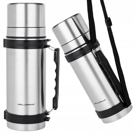 БОЛЬШОЙ ТЕРМОС, НЕРЖАВЕЮЩАЯ СТАЛЬ 18/10 INOX POLA, РЕМЕНЬ ДЛЯ РУЧКИ, 1 Л + 2 КРУЖКИ, 24 часа