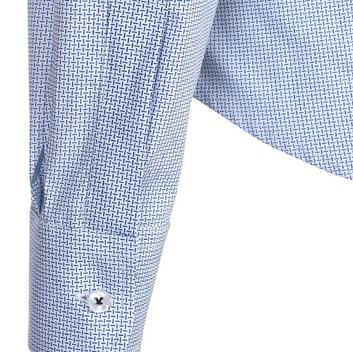 - Kołnierzyk i mankiety zapinane na guziki
