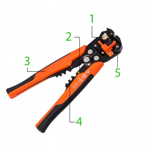 - ściąganie izolacji, zaciskanie, przecinanie, pokrętło regulacyjne, regulowany ogranicznik długości