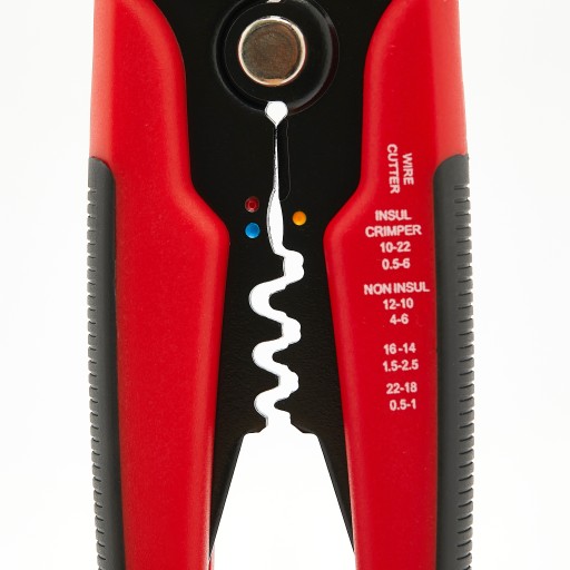Wielofunkcyjne narzędzie, które może posłużyć jako ściągacz izolacji z przewodów, przecinak, czy zaciskarka końcówek konektorowych, zarówno tych izolowanych jak i nieizolowanych.