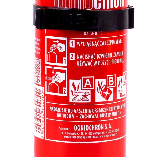 - W komplecie uchwyt, dzięki któremu można zamocować gaśnicę na ścianie