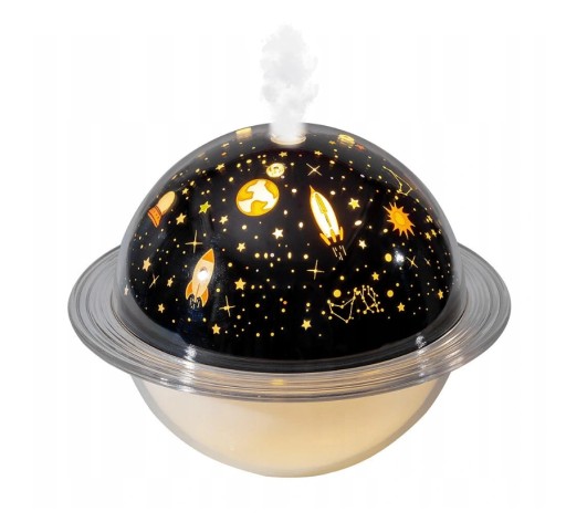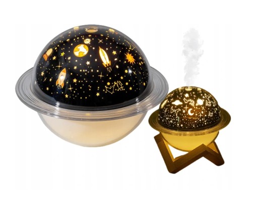 - Unikalny model ultradźwiękowego nawilżacza powietrza z lampką nocną i projektorem RGB 2w1.