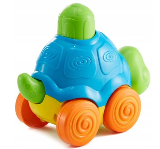 Ten mały żółwik jest gotowy do wyścigów! Wystarczy go nacisnąć, aby ruszył przed siebie. Radosna muzyka i dźwięki zachęcą Twojego maluszka do raczkowania! Podczas jazdy żółwik rusza główką, a nawet macha ogonkiem! Twoje dziecko pokocha radosną zabawę w raczkowanie za tym słodkim żółwikiem. Zabawa, która rozwija. Sprawność ruchowa: Żółwik porusza się, zachęcając maluszka do raczkowania i pomagając mu rozwijać umiejętności motoryczne. Zmysły: Przemieszczający się żółwik wydaje ciekawe dźwięki i odtwarza muzykę, co pobudza zmysły Twojego dziecka! Ciekawość: Dzieci odkrywają związki przyczynowo-skutkowe, obserwując, jak naciskanie żółwika wprawia go w ruch