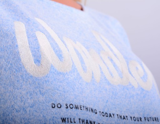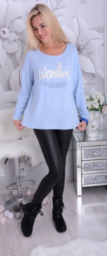 Postaw na ten najmodniejszy kolor baby blue i stylową naszywkę WONDER a na pewno będziesz nie tylko modna ale też będziesz czuła się w nim jak w Twojej drugiej skórze!