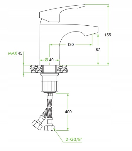 Wąż: kolumna - podłączenie baterii: 40 cm