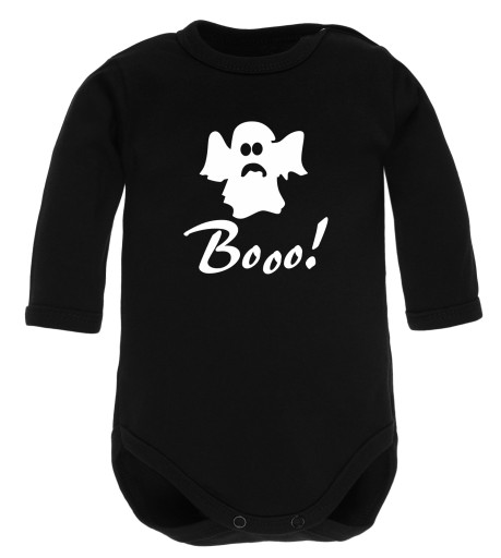 Czarne body długi rękaw, mix wzorów Halloween- z dynią, czarownicą, pająkiem, kotem albo innym śmiesznym wzorem.