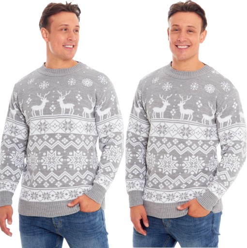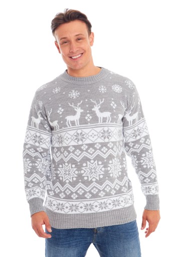 SZARY SWETER ŚWIĄTECZNY Z NORWESKIM WZOREM
