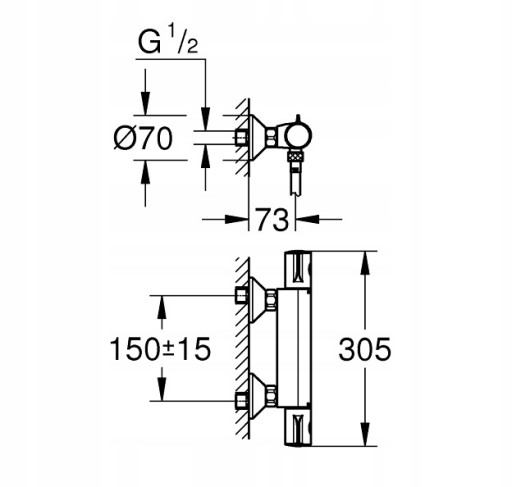 Rozstaw przyłączy: 150 mm +/- 15 mm