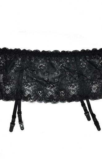 Wysoki pas do pończoch, wykonany w całości z szerokiej koronki otuli kobiece biodra, podkreślając ich krągłość. Pas posiada regulowane troczki pozwalające na jeszcze lepsze wymodelowanie i podkreślenie autów kobiecej sylwetki.