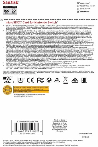 SANDISK NINTENDO SWITCH microSDXC 128 GB 100/90 MB/s A1 C10 V30 UHS-I U3