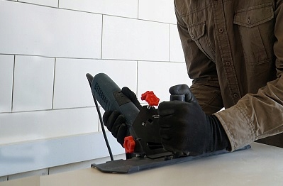 Przystawka adapter MECHANIC Air SLIDER 45 do szlifierki kątowej służy do cięcia płytek ceramicznych oraz gresowych pod kątem 45 stopni!