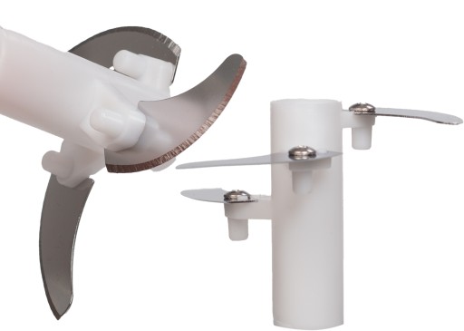 - Krajacz z tworzywa sztucznego pozwala na poszatkowanie produktów spożywczych w drobne kawałeczki.