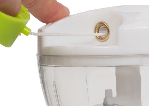 Nasza szatkownica jest wielofunkcyjna. Siekacz, po wyjęciu mechanizmu siekającego i nałożeniu pokrywy na pojemnik, może służyć jako lunchbox, w którym możemy przechowywać sałatkę. Wystarczy wyjąć mechanizm siekający i nałożyć pokrywę na pojemnik.