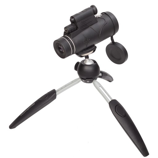 Teleskop można zamontować na statywie lub trzymać go w ręce.