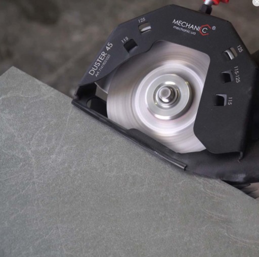 - Cięcie płytek ceramicznych za pomocą szlifierki kątowej zawsze wiąże się z powstaniem dużej ilości kurzu. Szczególnie dużo kurzu powstaje podczas cięcia płytek ceramicznych pod kątem 45 stopni, ponieważ usuwana jest duża ilość materiału.