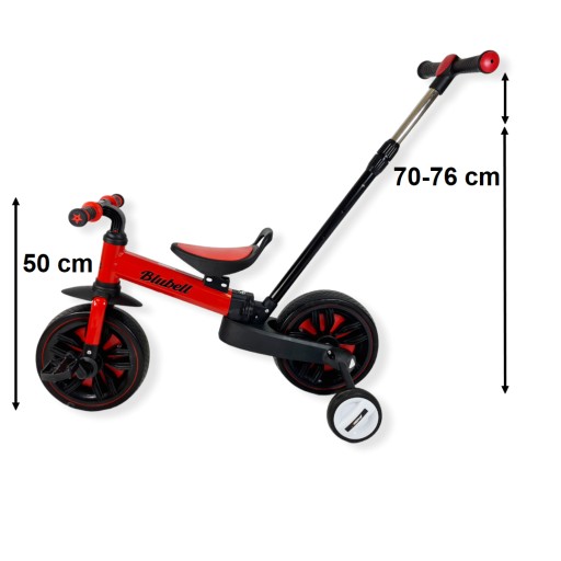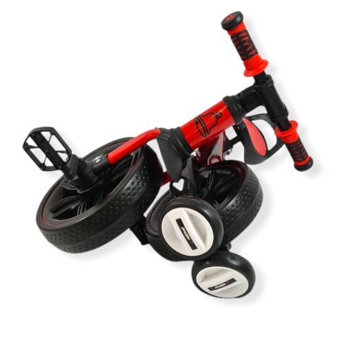 MOŻLIWOŚĆ złożenia w następujący sposób bez dodatkowych narzędzi przy sobie. Świetny sposób do nauki na świeżym powietrzu, w ciągu jednej zabawy można wykorzystywać pomocnicze kółka i pedały, bądź wcale z nich nie korzystać. Idealny pomysł na swobodne próbowanie możliwości i koordynacji malucha.