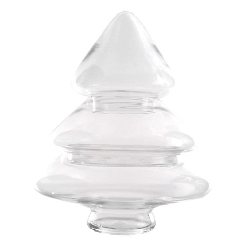 Szklana bombonierka w kształcie choinki. Najbardziej oczywiste i praktyczne zastosowanie to pojemnik na świąteczne łakocia.