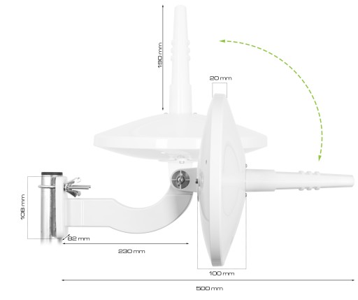 Anteną możesz ustawić zależnie od swoich potrzeb, możesz ją obracać w zakresie 180 stopni