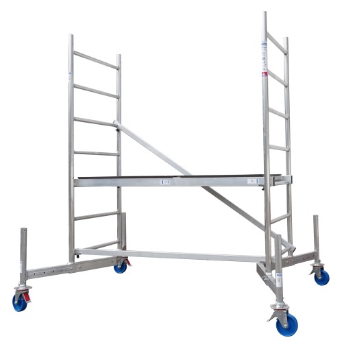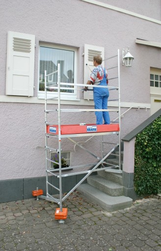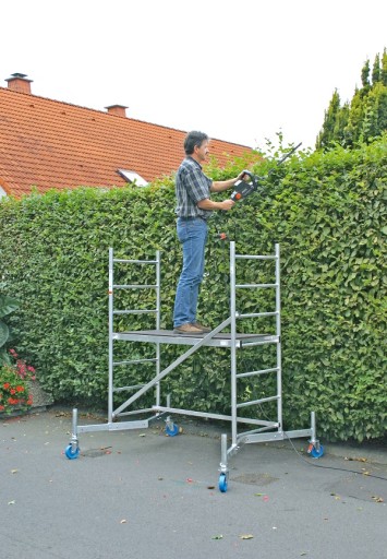 - Możliwość przestawiania wysokości pomostu co szczebel gwarantuje brak problemów przy kompensowaniu różnic wysokości podłoża,np. na schodach lub innych nierównościach.