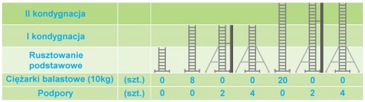 W zależności od wersji konstrukcji, konieczne może być stosowanie ciężarków balastowych lub podpór.