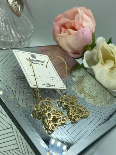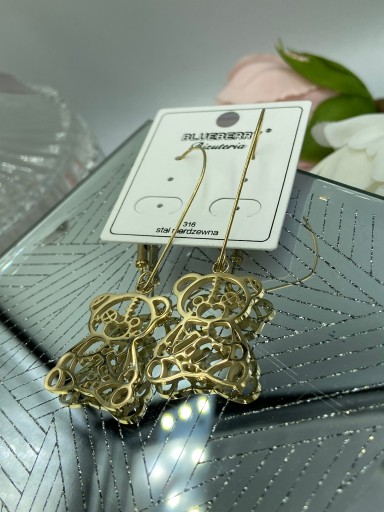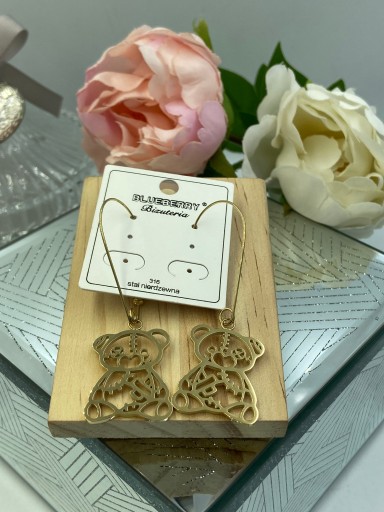 Piękne, miś, misie, duże wiszące, ażurowe, długie, kolor złoty
