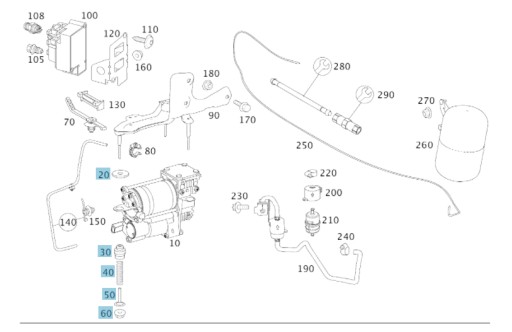 Oryginalny zestaw mocowania kompresora AIRMATIC w pojazdach Mercedes-Benz W220, W221 i C216.