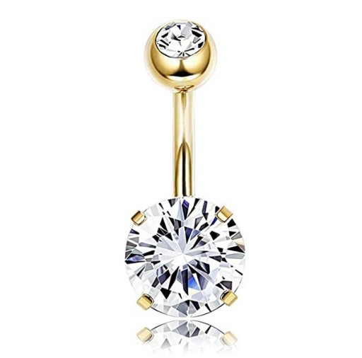 ЗОЛОТОЕ КОЛЬЦО ДЛЯ ПУПА С ЦИРКОНИЯМИ, СТАЛЬ 316L 1.6/10