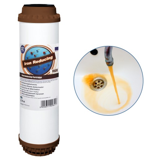 II, III Stopień - FCCFE wkład ze złożem aktywnym do odżelaziania wody. Efektywnie zatrzymuje rozpuszczone w wodzie związki żelaza. Stosowany do ochrony urządzeń AGD (pralek, zmywarek) oraz urządzeń grzewczych.