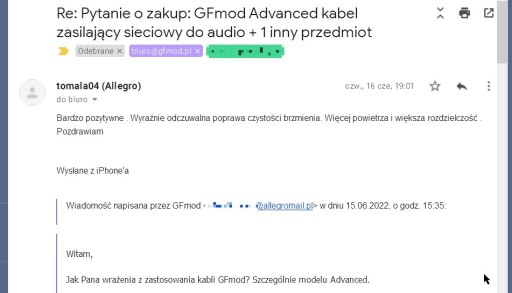 Bardzo polecam oba kable firmy GFmod a w zasadzie nie tylko kable bo zasilacz i switch również jest wyśmienitym produktem. Teraz z ogromna ciekawością czekam na zapowiadany kabel z najwyższej serii Ekspert