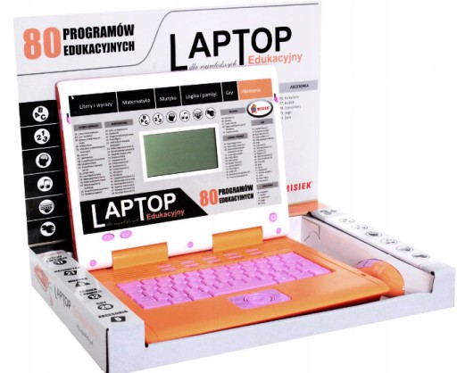 Zabawka posiada 80 programów, które wspomogą rozwój intelektualny malucha. Laptop przeznaczony jest już dla dzieci od 3 roku życia.