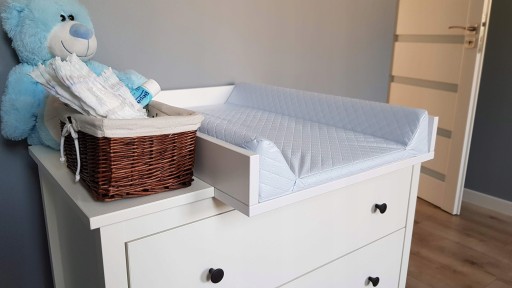 Idealnie dopasowana nakładka na komodę Koppang Ikea (małej - 3 szuflady), która stabilizuje umieszczony w środku przewijak zapewnia bezpieczeństwo dla Twojego dziecka. Przednia deska o szerokości 10 cm ułatwia dostęp do wnętrza szuflady, z łatwością wyjmiesz ubrania nie tracąc dziecka z oczu. Przewijak ma wytrzymałą konstrukcję przez co posłuży Ci aż do momentu odpieluchowania.