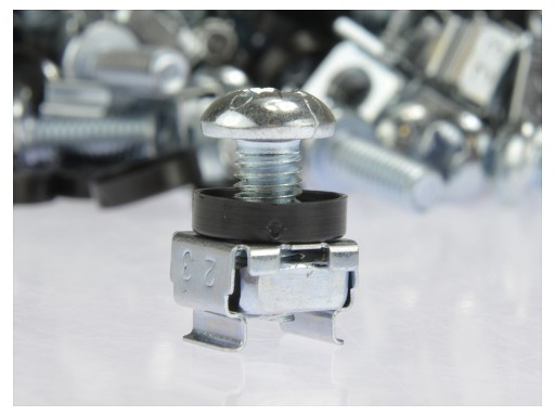 Śruby M6 służące do mocowania wyposażenia do szyn montażowych w szafach RACK 10" i 19" (np. półek, patchpaneli, organizerów itp.).