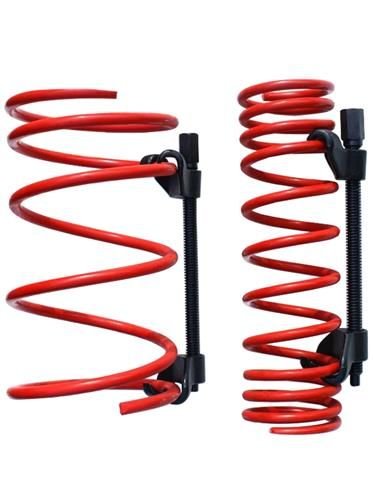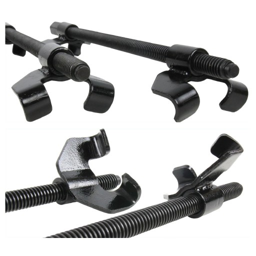 Zestaw ściągaczy do sprężyn samochodowych niezwykle pomocnych przy wymianie amortyzatorów i sprężyn w samochodzie. Ściągacze do sprężyn są niezbędne w profesjonalnym serwisie podwozia.