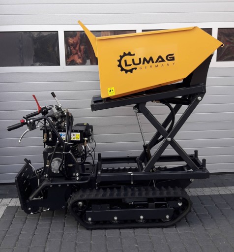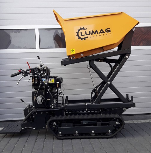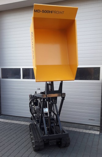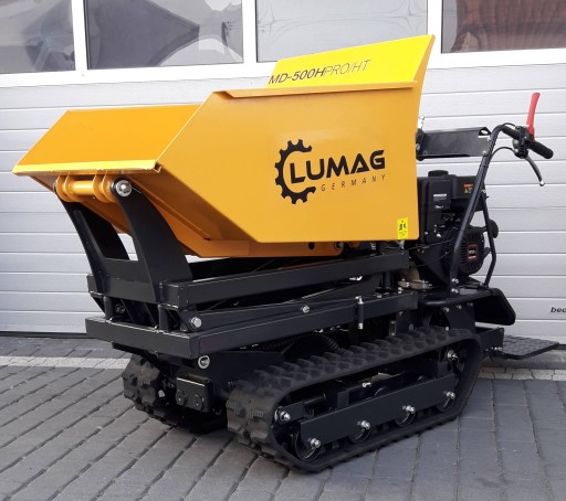 Miniwywrotki marki Lumag Germany sprawdzają się w najtrudniejszych warunkach dzięki wytrzymałej konstrukcji i wysokiej jakości materiałów. Budowa wywrotek pozwala na osiągnięcie dużej wydajności oraz sprawności. Gąsienicowa miniwywrotka MD500H-PRO-HT z hydrauliczną wywrotką dzięki swym wymiarom może być swobodnie używana w budynkach oraz w wąskich przejściach, przejazdach. Ładowność wynosi 500 kg.