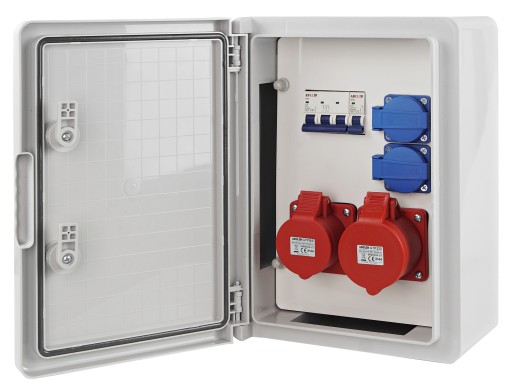 RPD - Rozdzielnice przenośne z okienkiem 12 modułowym - maksymalnie 3 gniazda siłowe i 4 gniazda 230V. Rozdzielnice z rączką do pracy w terenie - zabezpieczone, gotowe do podłączenia w dowolnym miejscu pod gniazdo siłowe. Dostępne wersje z zabezpieczeniami, występują opcje z licznikami.