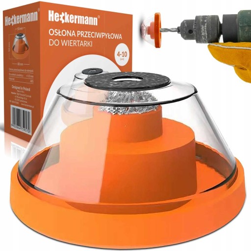 Osłona Heckermann wykonana jest z wysokiej jakości materiałów, w tym antypoślizgowej gąbki i odpornej na wstrząsy uszczelki wyciszającej z PVC. Konstrukcja w kształcie miski zapewnia dużo miejsca do przechowywania powstałego podczas wiercenia pyłu i jest wygodniejsza w użyciu.