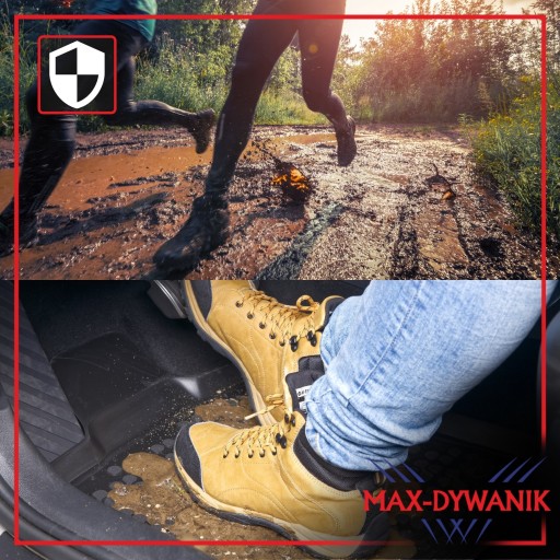 Zestaw stworzony przez firmę MAX-DYWANIK® składający się z dedykowanych dywaników gumowych oraz uniwersalnej osłony na tunel środkowy polskiej firmy REZAW-PLAST.