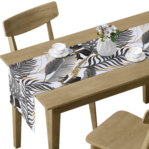 Bardzo elegancki i stylowy bieżnik doskonale wpasuje się do każdego rodzaju wnętrz, od tradycyjnych po bardziej nowoczesne. Prosta forma bieżnika o wymiarach 40x180 cm sprawia że jest on uniwersalnym dodatkiem, który doskonale sprawdzi się jako nakrycie stołu w jadalni, kuchni a także ławy w salonie.