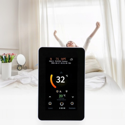 - 1x Termostat z ekranem dotykowym 4.3 LCD czarny pionowy