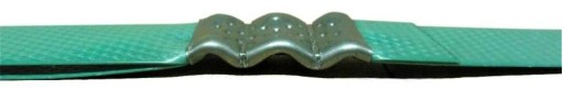 Zapinka blaszana jest zagniatana na taśmie dzięki czemu taśma jest trwale połączona a porowata powierzchnia na zapince dodatkowo zabezpiecza taśmę przed wysunięciem.
