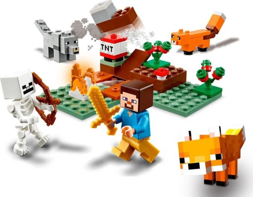 Funkcje i figurki Minecraft™ do zbudowania, modyfikowania i zabawy w tym ciekawym zestawie LEGO® zachęcą dzieci do odejścia od komputera i przeniesienia emocjonującej gry Minecraft do prawdziwego życia. Budowanie własnych przygód z Minecrafta z czterema uwielbianymi postaciami Zachęć dzieci do kreatywnej zabawy w stylu Minecrafta figurkami Steve'a, szkieletu, wilka i lisa (nowość na styczeń 2020 r.). W komplecie są ośnieżone góry do wspinania się, czerwone jagody do jedzenia, płonące ognisko do ogrzewania się i dynamit do wysadzania drogocennej rudy w mroźnej tajdze. Wyobraźnia z pewnością podpowie dzieciom jeszcze inne niezwykłe przygody! Zupełnie nowy wymiar zabawy eksploracyjnej dla graczy w Minecrafta Zestawy LEGO Minecraft zapewniają dzieciom narzędzia do swobodnej, samodzielnej zabawy, a dzięki autentycznym biomom z gry Minecraft i figurkom popularnych bohaterów będzie ona trwać całymi godzinami.